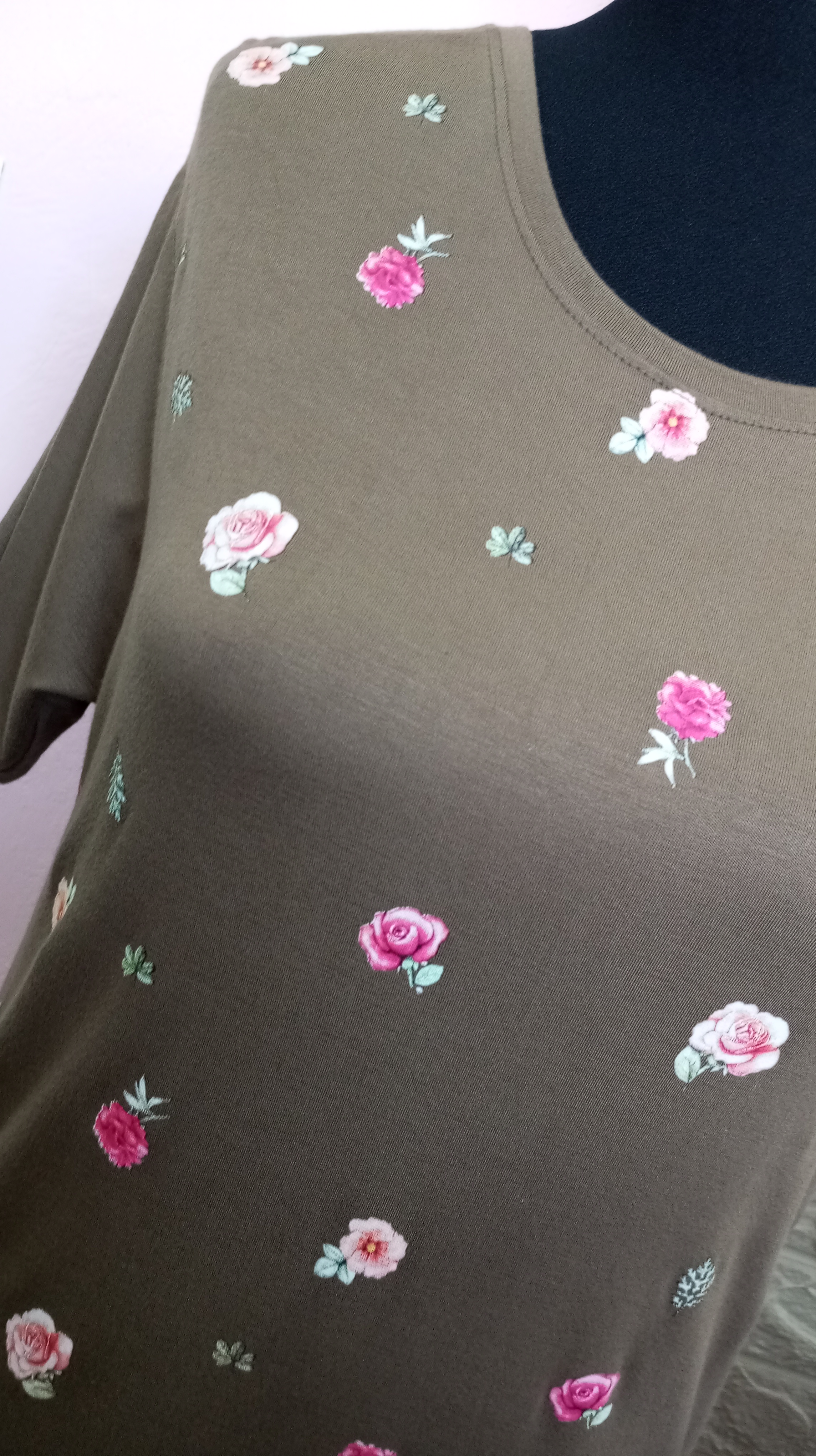 تیشرت آستین کوتاه چاپی طرح گل رز