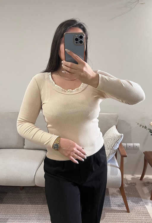 بلوز کبریتی یقه مرواریدی